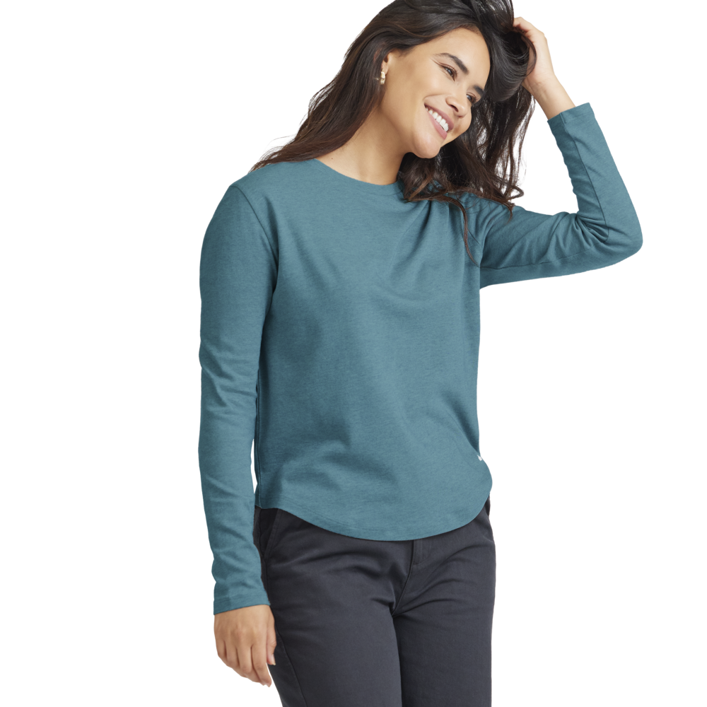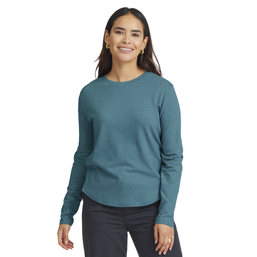 Our Women's Soft Merino Long Sleeve Tee - Chasm Teal has a carbon footprint of 4.11 kg CO2e. Learn more about carbon footprint labeling and our commitments to reduce our impact.